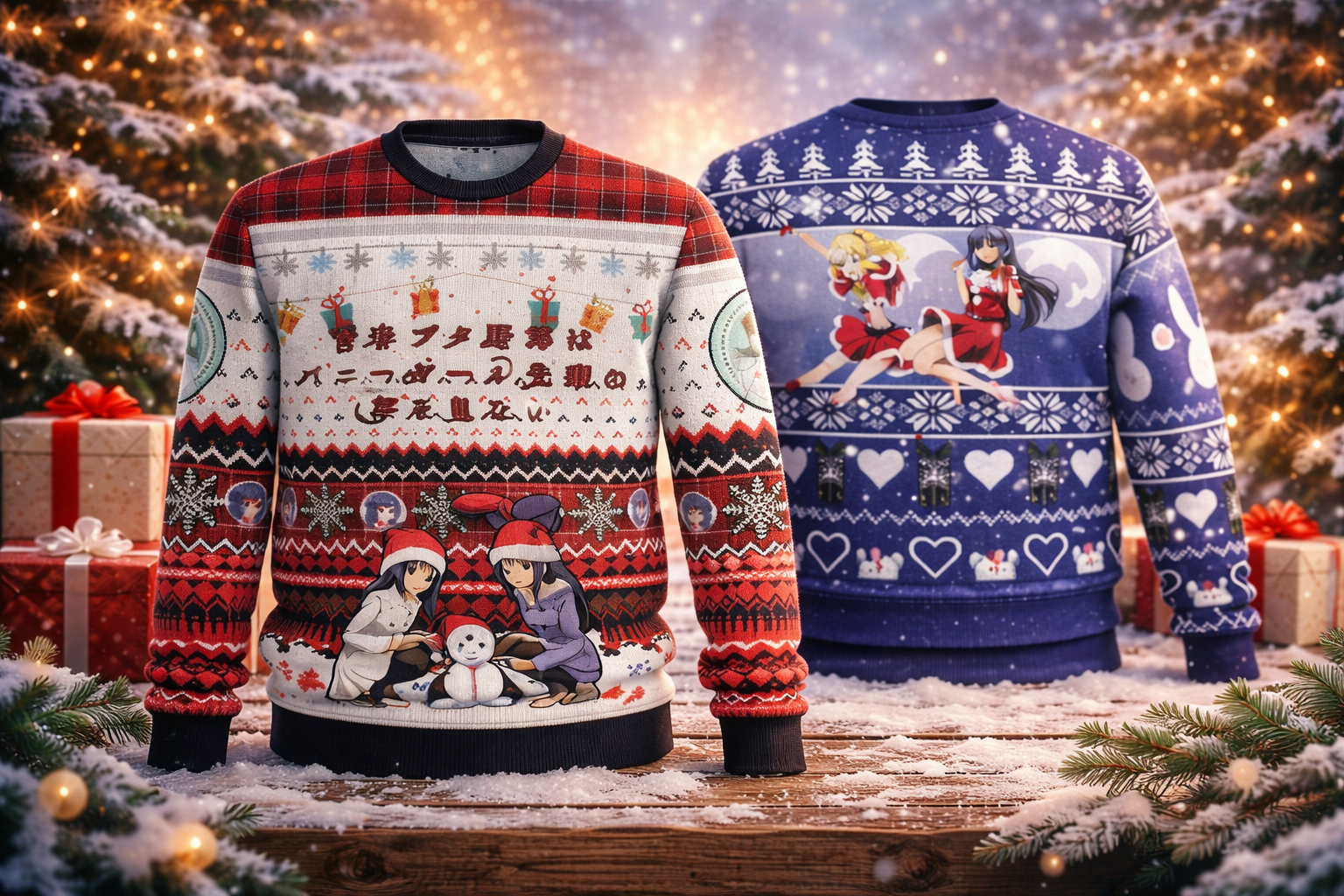 Our Christmas collection blends elegant winter style with the anime universe to create unique, festive sweaters full of character.🎄✨